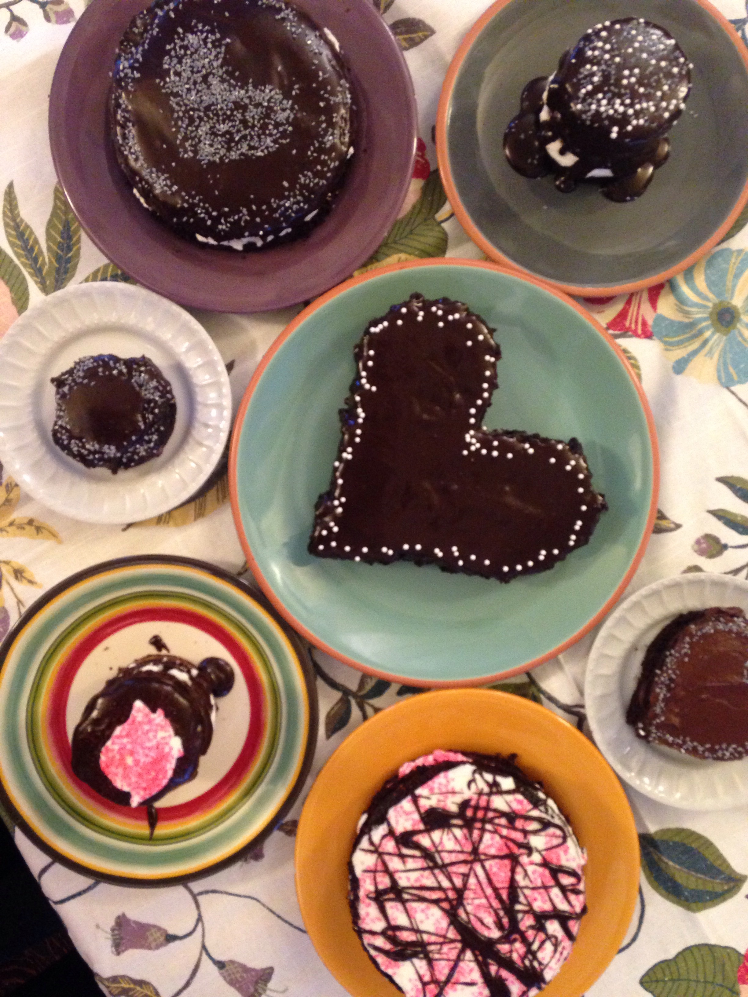 P.S. Here the chocolate chocolate cake recipe, though I made many adaptations (like plain old sweetened whipped cream between the layers–yum!–and no fancy chocolate bark). Oh, and if you are making this recipe for just you and your sweetie, I advise a half or quarter batch. So much cake!!!!!
