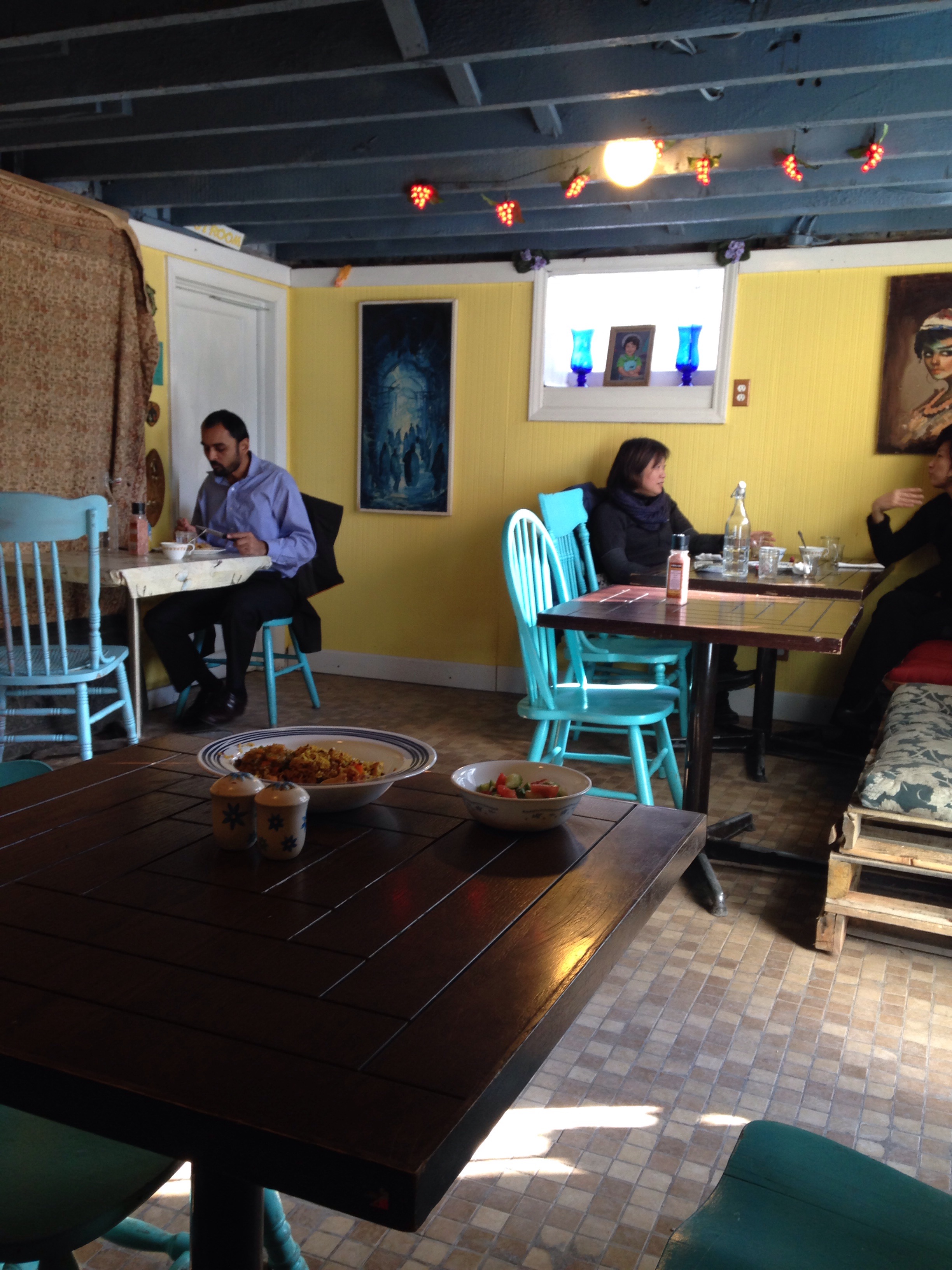 Today I met my friend Kelly at a teeny tiny hole in the wall place called Layla’s. And it was perfect. Oh was it perfect?! We took a break from our work days to look through my hundreds of honeymoon photos. We shared two Persian meals (that each included a soup or a salad at a mere 8 bucks a pop). I drank French Press coffee that was obviously made fresh and brought to the table in the French press!! And then we had $1 homemade baklava. I could have eaten a hundred at that price. But I resisted. Somehow. The walls were colorful and the furniture was mismatched and it was just so lovely in this dive-y, not even trying to be beautiful kind of way.