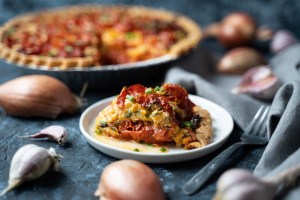 Tomato Pie with Brown Buttered Garlic & Shallots