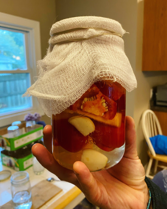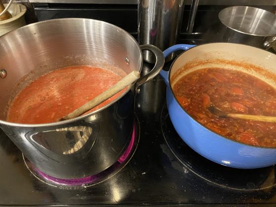 And then began the completely manic sprint to preserve the last of the subpar tomatoes. I grabbed any seconds we had available at the farm and went totally crazy. We put 30+ pints of tomato products (tomato sauce, pizza sauce, tomato soup, stewed tomatoes) into our freezer last week and then started on the peppers. We’ve got another 20+ jars of pepper products ready for the pantry. And we’re no where near done.